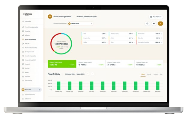 Aplikace, díky které má klient přehled o veškerém svém majetku. Je napojená na externí zdroje dat a automaticky aktualizuje momentální hodnotu aktiv na denní bázi.